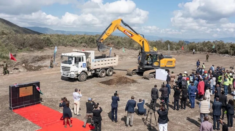 上午九點,肯尼亞共和國總統(tǒng)魯托閣下搭乘的直升飛機(jī)降落在綠色化肥廠建設(shè)工地,他與開山控股集團(tuán)股份有限公司董事長曹克堅首先為項目揭牌,并親自開動挖掘機(jī),為項目建設(shè)挖掘了第一鏟土,宣告了肯尼亞有史以來最大的工業(yè)項目開工建設(shè)。
