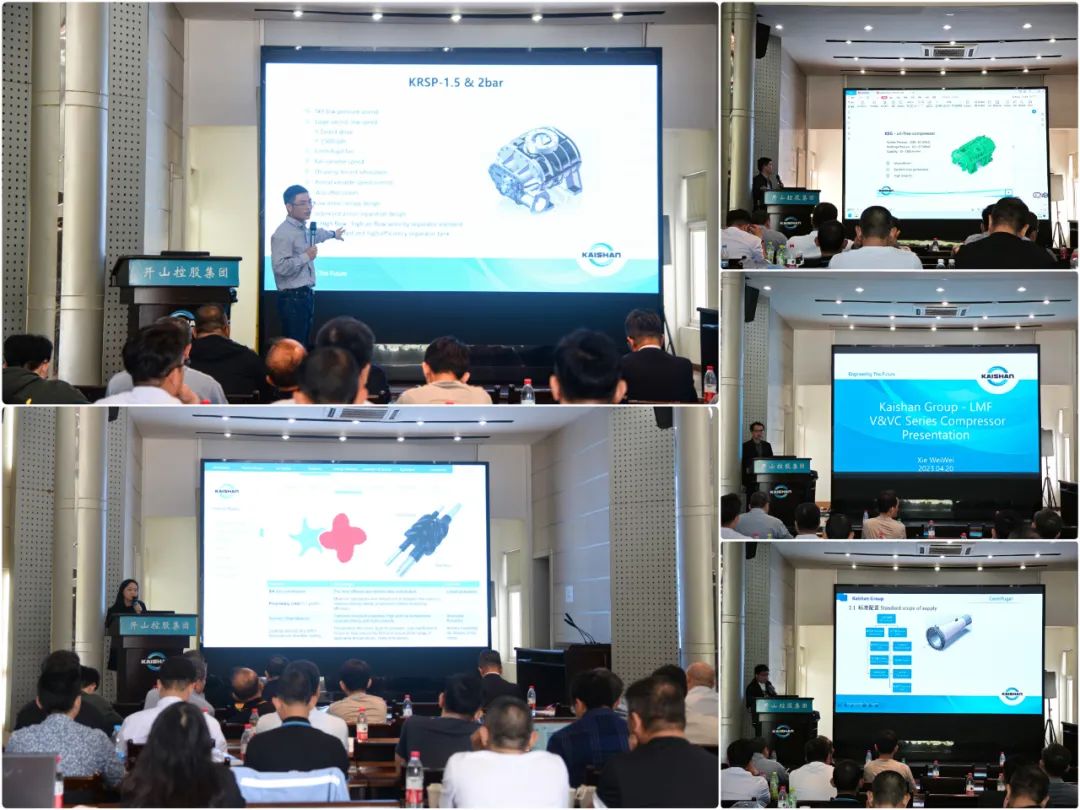 培訓(xùn)中,開山海外事業(yè)部產(chǎn)品市場經(jīng)理徐寧做了全譜系開山螺桿壓縮機(jī)產(chǎn)品介紹;開山無油壓縮機(jī)產(chǎn)品經(jīng)理王子珍、開山離心壓縮機(jī)技術(shù)主管歐志奇、高壓往復(fù)壓縮機(jī)研究所所長謝偉偉、開山工藝(氣體)壓縮機(jī)經(jīng)理倪健、開山壓縮機(jī)公司技術(shù)部經(jīng)理黃劍等分別就各自負(fù)責(zé)的產(chǎn)品給代理商們做了技術(shù)匯報。值得一提的是,工程技術(shù)人員擁有雙語能力做流利演講和答疑的能力,顯示開山已經(jīng)做好了開拓海外市場的人力資源準(zhǔn)備。